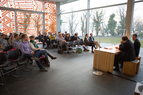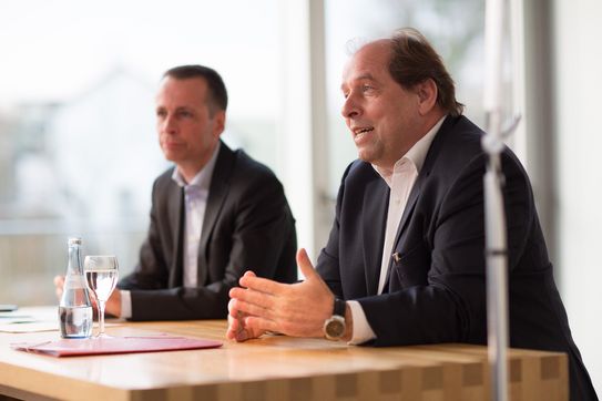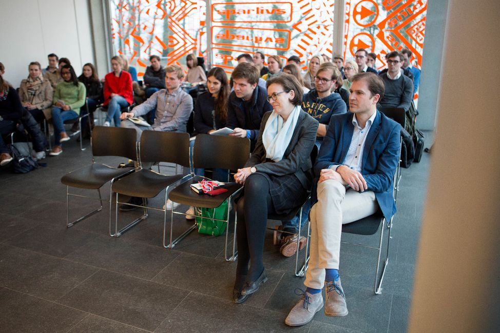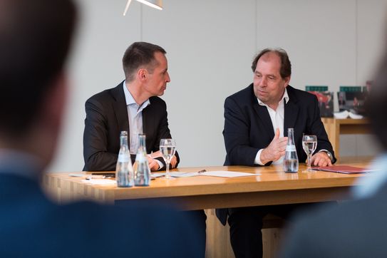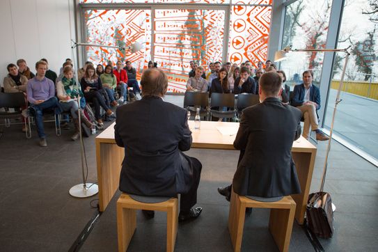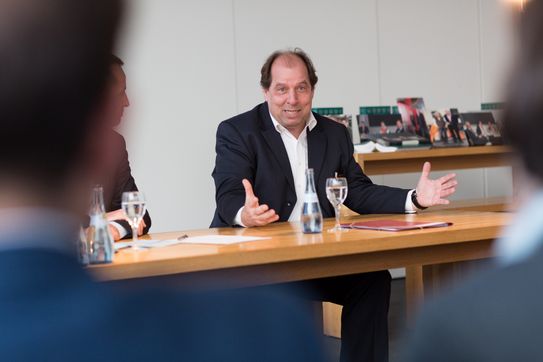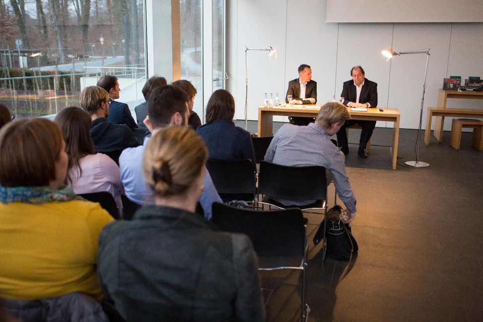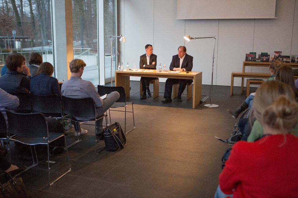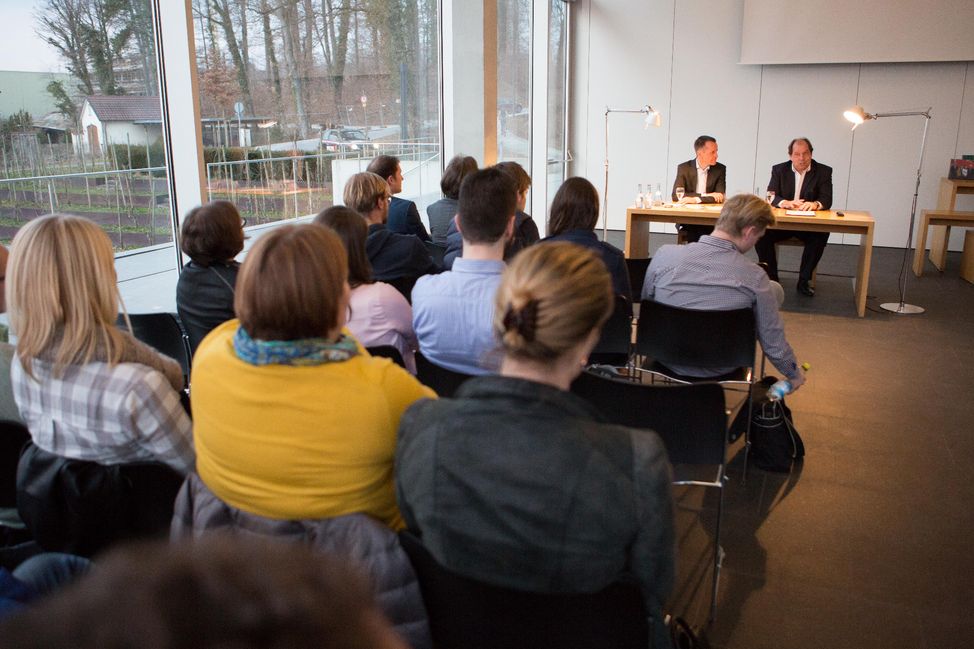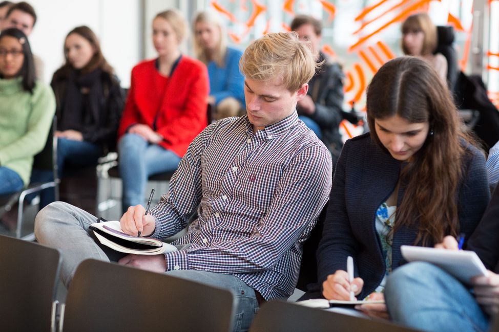Bernhard Rösner ist der erste Fremdgeschäftsführer im Familienunternehmen Lamy und hat große Demut vor dem Lebenswerk der Unternehmerfamilie. Er ist gekommen um zu bleiben – und gibt den Studierenden, denen er selbst neugierig Fragen stellt, den Hinweis mit, dass Karriere nicht planbar ist.