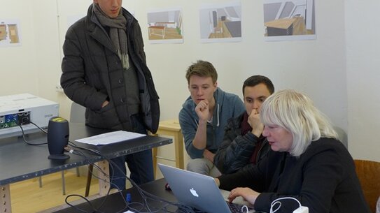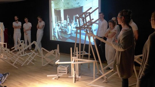 Welche Klänge sind im Gebäude der ZU leicht zu finden und wo ruhen welche im Verborgenen? Welche Form und welches Design korrespondiert mit welchem Klang oder welcher Musik? Wie führe ich die nach außen gerichteten Sinne zu einer „inwändig“ gerichteten Konzentration? Und wie kann ich die erworbene Präsenz performativ sichtbar machen oder mit anderen teilen? Mit diesen Fragen beschäftigten sich im Fall Semester 2016 mehr als 100 Studierende der ZU. Mit dem Künstler und Körpertrainer Immanuel Grosser, dem Designer Dominik Lutz, dem Musiker und Komponisten Michael Kiediasch und dem Designer Axel Kufus erprobten sie "Neue Formen der Zusammenarbeit".