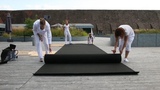Thema des Workshops "Basic postures and site specific structures" war die Aneignung von Orten durch Yoga-Praxis und ortsspezifische Strukturen.