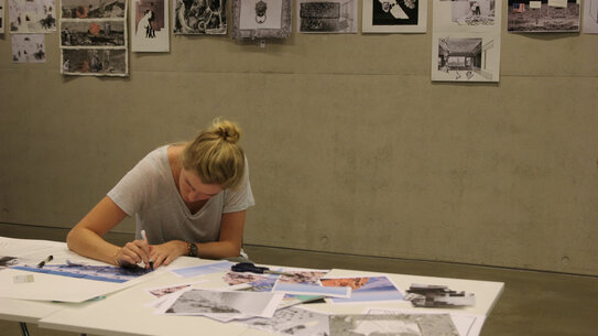 Wir suchen nach dem Neuen, das aus dem Bestehenden hervorgeht. Die Wandlungsfähigkeit der gezeichneten Linie kombinieren wir mit dem gestaltenden Schnitt in die fotografische Realität. Collage und Zeichnung: wir üben die agilen Entscheidungsstrukturen zwischen Erfinden und Finden. Wir beobachten und steigern das Zusammenwirken von geführter Linie und materieller Eigendynamik. Die gezielte Wechselwirkung zwischen Plan und Überraschung ist somit gleichzeitig Thema und gestalterische Handlungsweise. Unsere bildnerische Arbeit fokussiert dabei auf das Maß an Beständigem im Neuen und das prägende Verhältnis zwischen den anthropologischen Grundkonstanten und der Innovation. Die Betrachtung von Kunstwerken begleitet und schärft unser bildnerisches Handeln und Denken.
