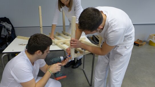 Mikroarchitekturen bauen, die sich intervenierend in das universitäre Umfeld der