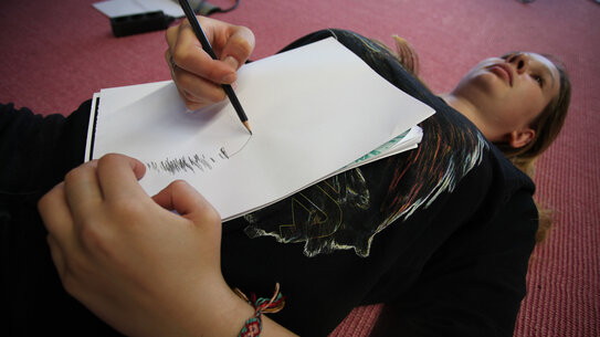 Wir schlagen einen Bogen von Körperwahrnehmung über gemeinsame experimentell künstlerische Prozesse, bis hin zur Entdeckung und Weiterentwicklung eigener Ausdrucksmöglichkeiten. Hierbei stehen verschiedene künstlerische Materialien zur Verfügung, an denen sich das „Ich“ abarbeiten, einarbeiten, erkennen und in Frage stellen kann. Spuren hinterlassen, Erkenntnisse gewinnen, ein neues Gegenüber schaffen.