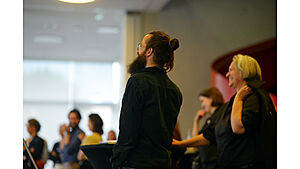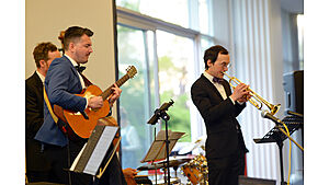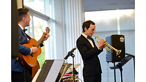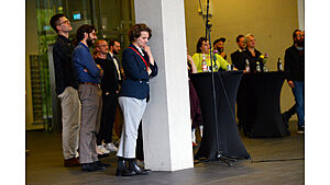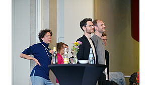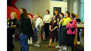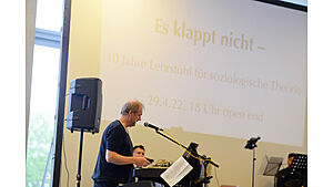 Am 29. April 2022 fand anlässlich des 10-jährigen Bestehens des Lehrstuhls für soziologische Theorie am Seemooser Horn ein Alumnitreffen des Lehrstuhls statt. Zur Feier des „Es klappt nicht" kamen neben etwa 50 Absolvent:innen des Lehrstuhls auch die Mitglieder des ersten Jahrgangs der Luftschiffkapelle wieder zusammen. (Fotos: Lena Reiner)