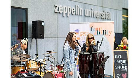 Die Idee dahinter war es, Vergangenheit, Gegenwart und Zukunft der ZU lebendig werden zu lassen. Nach den Begrüßungsworten von der studentischen Vizepräsidentin Emilia Bös konnten Besucher:innen in Vorträgen, Diskussionen, künstlerischen Beiträgen und Begegnungen erleben, wie bunt, neugierig und mutig die ZU ist. Abgerundet wurde das abwechslungsreiche Programm von einer Bibliotheks- und einer Architekturführung, Aktionen der studentischen Initiativen, einem Auftritt der Luftschiffkapelle sowie Musik und Tanz.