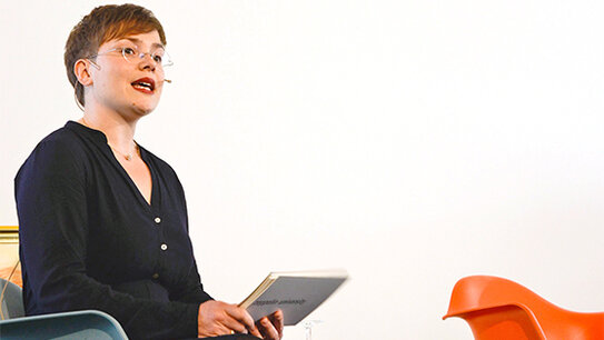 „Ich habe mir zwar noch weitere Master-Studiengänge im Bereich Kulturmanagement angeschaut, aber besonders bei der ZU hatte ich ein gutes Gefühl“, erläutert Bishop. „Denn hier werden Fragen zu kulturellen Themen behandelt und diskutiert, die mich schon lange beschäftigen.“ Was ihr an der ZU besonders gefällt, ist der hohe Grad an Selbstverantwortung, dass sie ihren eigenen Weg gehen kann und nicht nur durch das Studium geleitet wird. So hat sie anfangs auch gleich die Chance ergriffen, als Sprecherin des Studiengangs CCM die Kommunikation zwischen der Programmleitung und den verschiedenen Anspruchsgruppen zu forcieren. Und sie hat gleich bei mehreren studentischen Projekten mitgewirkt: So hat sie für die „Lange Nacht der Musik 2013“ die Musikerakquise übernommen und bei der ZUfo 2014 das künstlerische Rahmenprogramm organisiert. Auch als Moderatorin konnte sie sich auszeichnen: So bei der BürgerUniversität mit der Medienunternehmerin, Autorin und Kunstsammlerin Christiane zu Salm.