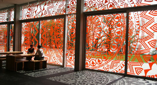 Einen Ort der Überraschung, der Ambivalenz und der Komplexität hat die schwedische Künstlerin Gunilla Klingberg als „Artist in Residence“ im April 2009 für die Zeppelin Universität - als den universitären Ort, an dem Fragen der Wirtschaft, Politik und Kultur verhandelt werden - geschaffen. Ihr Werk Brand New View wurde für die südliche Fensterfront konzipiert und verwandelt aus dem Wirtschaftsleben entlehnte Formen und Zeichen, Logos von Billigdiscountern zu ekstatischen und verführerischen Strukturen. Die gesampelten Zeichen aus Kommunikationsprozessen der Wirtschaft verweisen ambivalent sowohl auf die beim Einkauf erlebten hypnotisierenden Werbebotschaften als auch auf Meditationsbilder, wie Mandalas oder gotische Kirchenrosetten. Wenn Brand New View als Bildwerk zwischen Sakralem und Banalem, zwischen Wirtschaft und Religion, zwischen Aldi und Fensterrosen schwingt, so ist diese Uneindeutigkeit und Komplexität ein Charakteristikum des Bildlichen. In Arbeiten wie Brand New View bringt Klingberg verdeckte Aspekte visueller Sprache ins Bewusstsein. Sie stellt die Frage, mit welchen Symbolsystemen wir uns heute verständigen und welchen Einfluss diese auf den eigenen Erfahrungsbereich haben.