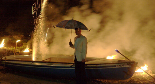 Holger Pirke zeigt zur Eröffnungsfeier des Neubaus der Zeppelin Universität 2008 eine kurze, prägnante Kunstaktion, welche Signalwirkung am Ende dieses Tages entfalteten soll. Pirke setzte als Akzente sich und verschiedene Formen von Feuer ein. Er spricht von der Aktion als " ufernaher Randnotiz ". Holger Pirke arbeitet bei seinen Aktionen seit Jahren mit der Heiterkeit. Seine Auftritte, ernstgemeinte Einmann-Inszenierungen mit poetischem Kalkül, verdichten archaische Bilder mit Pirkes Zeitsicht. Zur Eröffnung des Erweiterungsbaues thematisiert er die Fragen "Wie kommt Neues auf die Welt ohne alt auszusehen" oder "Mit wieviel Leichtigkeit kommt Schwere in Bewegung?"