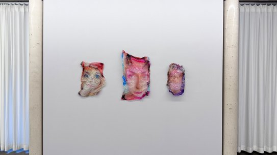 Die Werke der Reihe Something Other Than a Shroud (2022) bestehen aus digitalen Bildcollagen auf Stoff und Harz. Ausgangspunkt sind verzerrte Selbstporträts, die durch wiederholtes „Glitchen“ von Face-Swap-Apps entstanden sind.